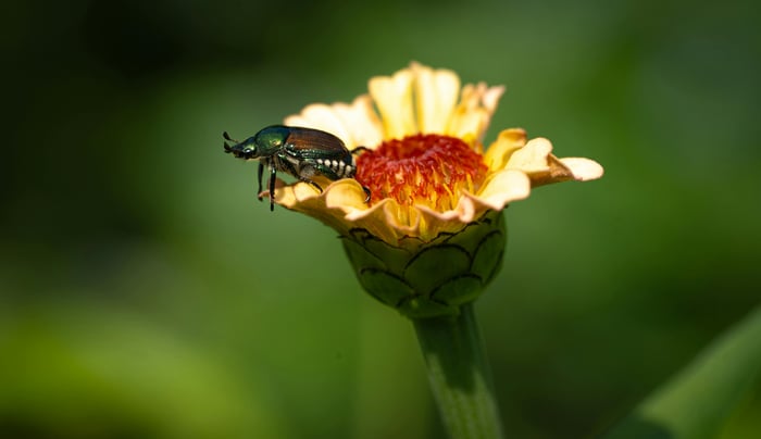 Several beetle species can wreak havoc on gardens, with the most common being: